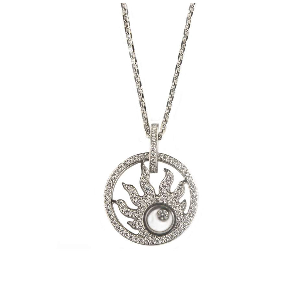 An 18k white gold Chopard Happy Sun pendant. The delicate circular pendant is set with 107 diamonds totalling 0.26ct.