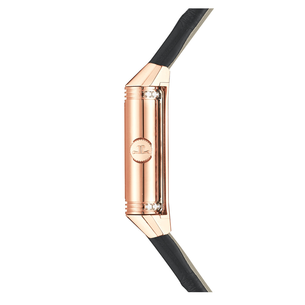 When the Reverso turns to allow room for another dial driven by the same movement, it offers a new face to its wearer. The Reverso Classic Small Duetto pink gold watch with its delicate proportions is a little gem, day and night.