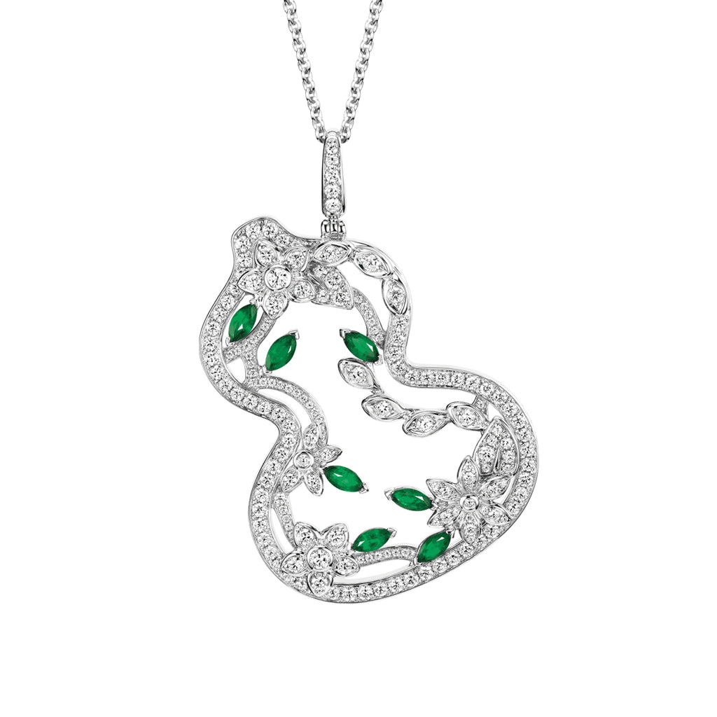 18 karat rose and white gold double wulu pendant on chain.Wulu Garden maxi necklace in 18K white gold set with emeralds and diamonds
